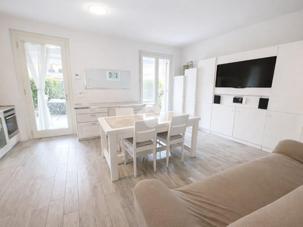 L’appartamento accoglie con un open space ampio e luminoso, perfetto per la vita quotidiana e per ricevere amici, collegato a un piccolo disimpegno utilizzabile a lavanderia.