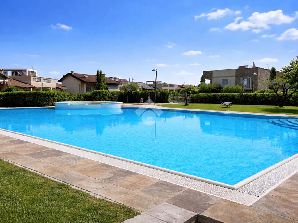 Completano la proprietà una comoda cantina e un box auto singolo. Il contesto residenziale è impreziosito da una ampia piscina condominiale, perfetta per il relax durante la bella stagione.