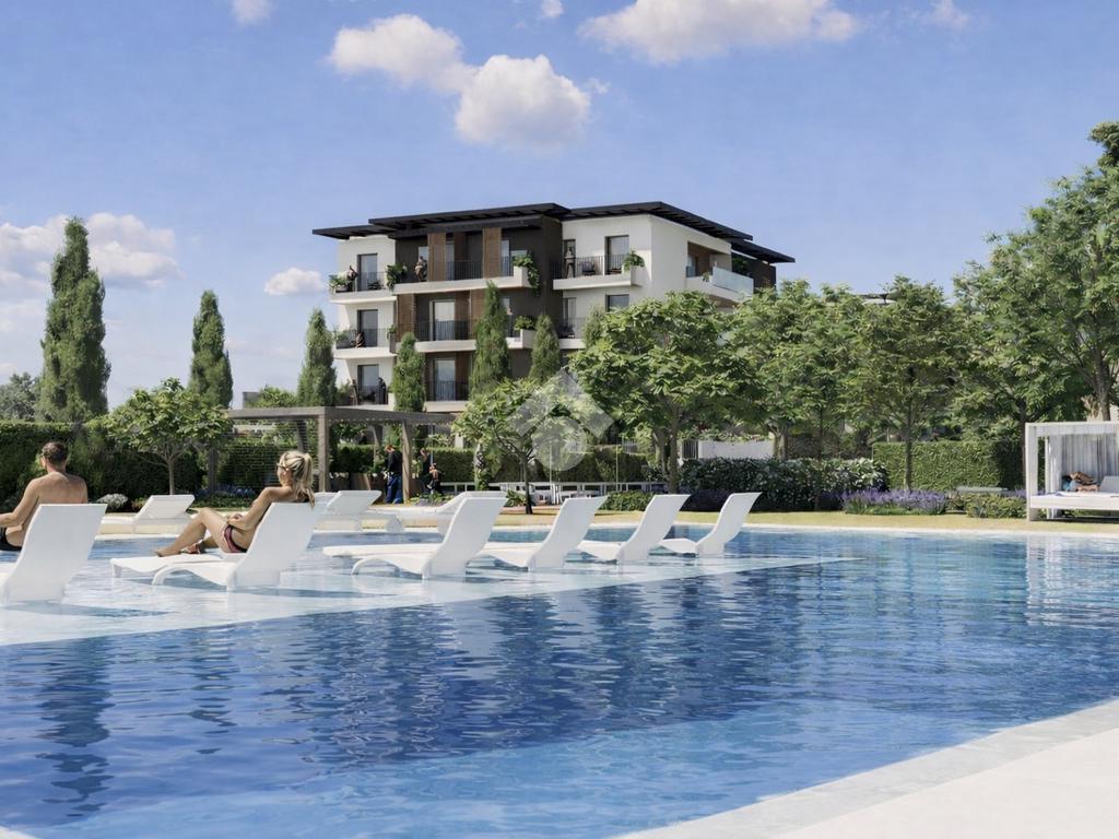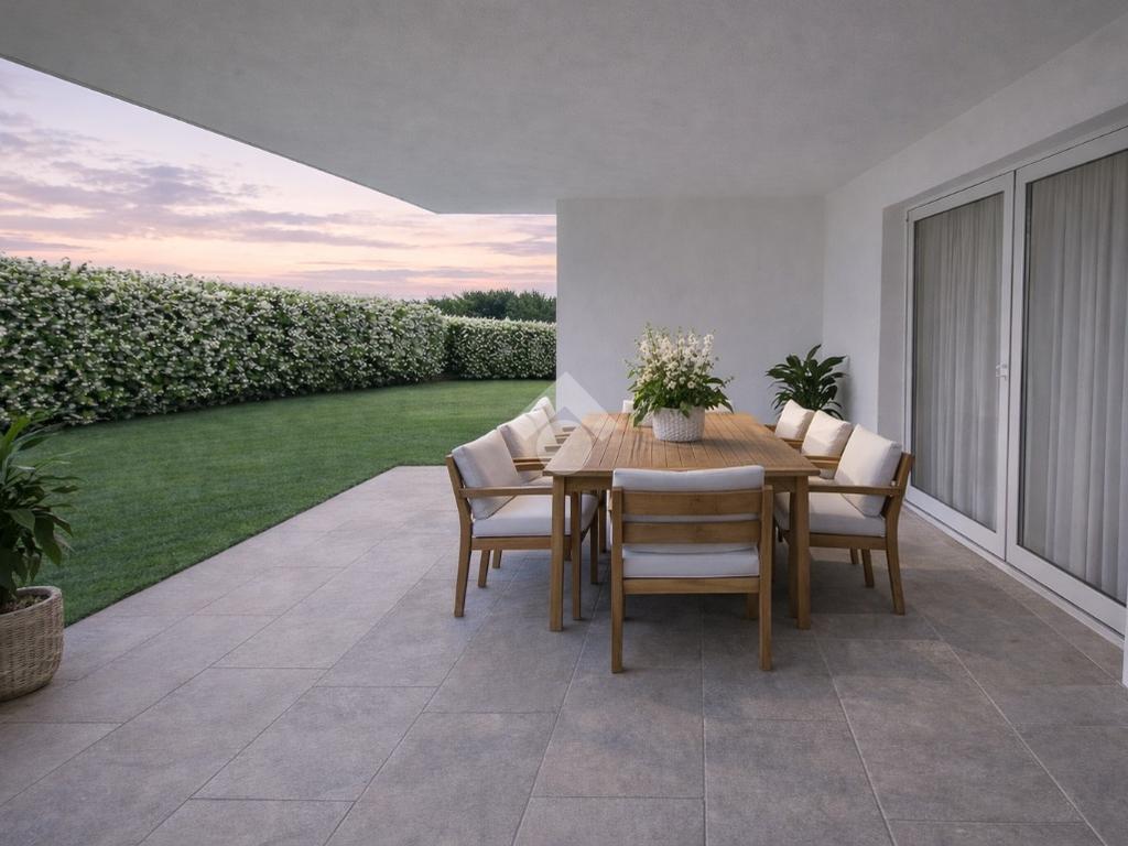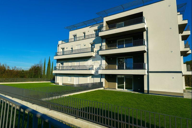 Nel cuore di Cavalcaselle, nel comune di Castelnuovo del Garda, si propone in vendita un elegante appartamento di nuova costruzione, situato al piano terra di un residence con piscina, l'immobile si estende su una superficie di 145 mq, offrendo spazi ben distribuiti e funzionali. L'appartamento comprende tre camere da letto, due bagni e un openspace tra sala e cucina. Il giardino privato con ampio patio esterno, rappresenta un'oasi di tranquillità, perfetta per momenti di relax all'aperto. L'edificio è dotato di ascensore, facilitando l'accesso e la mobilità. Questa soluzione abitativa si distingue per la sua categoria signorile, offrendo un contesto residenziale di qualità in una zona ben servita e strategicamente posizionata.