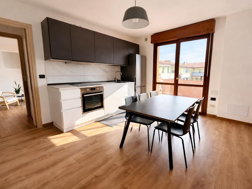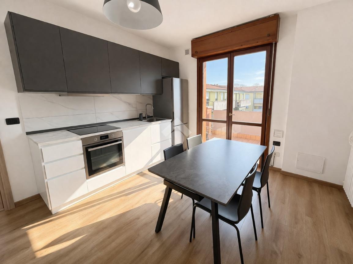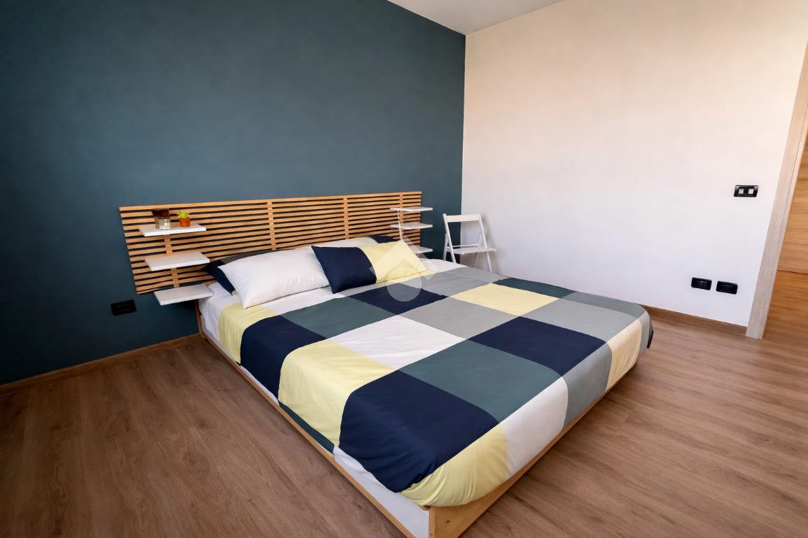L'immobile offre una disposizione funzionale con due camere da letto, un bagno e un ampio corridoio. La zona giorno, composta da openspace tra sala e cucina, si affaccia su un comodo terrazzo.