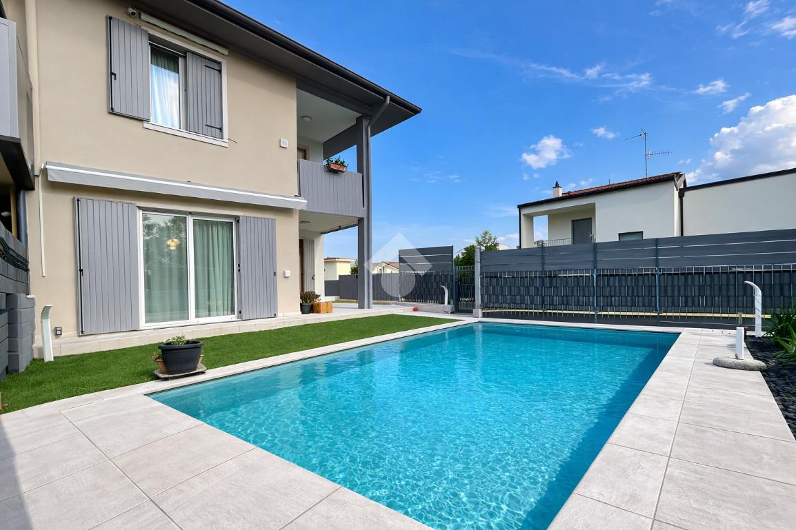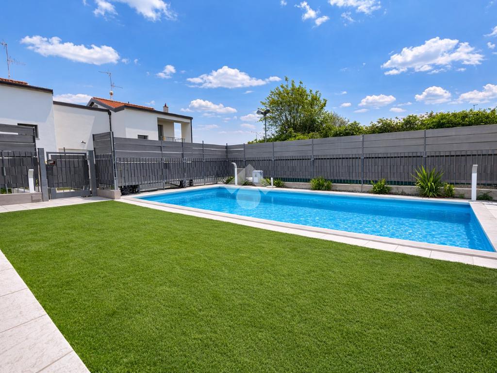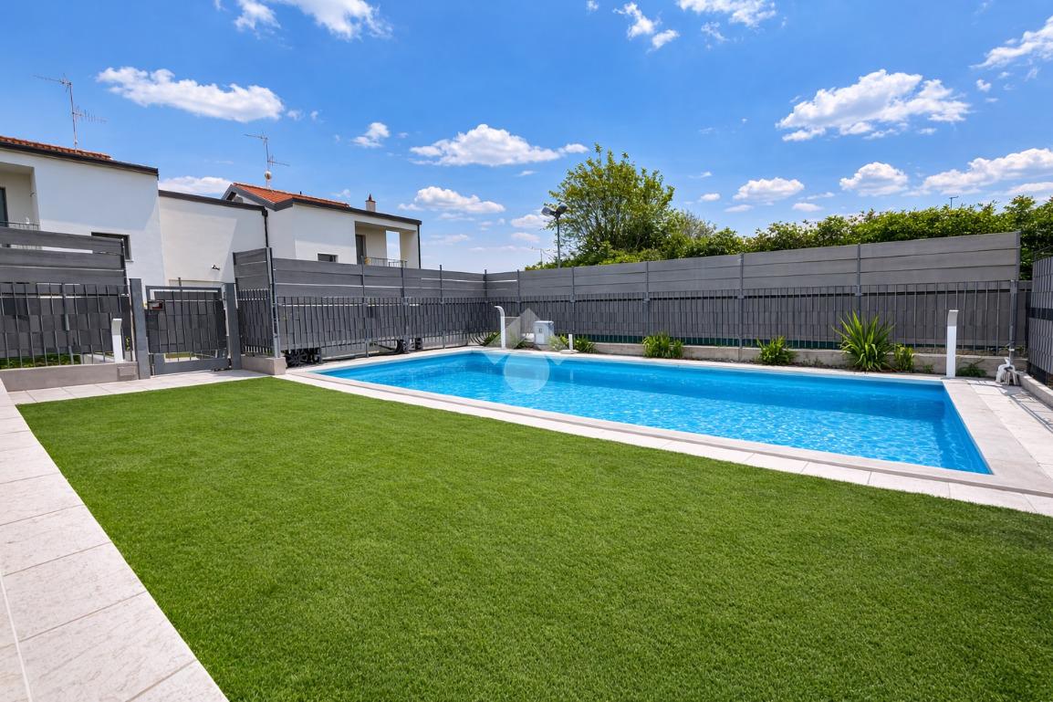 Completano la proprietà due comodi box auto e un’area esterna curata in ogni dettaglio, pensata per vivere appieno la casa anche all’aperto. Il vero fiore all’occhiello dell’abitazione è la splendida piscina privata, che dona esclusività e rende l’ambiente ideale per il relax nelle stagioni più calde.