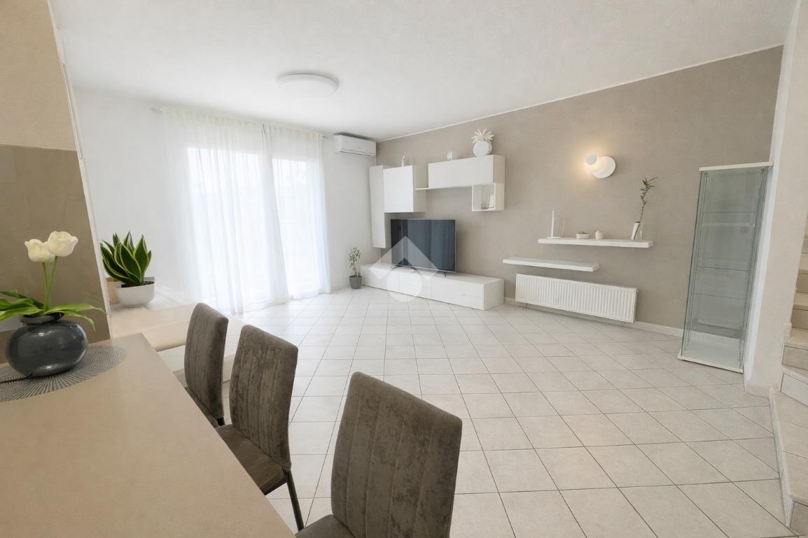 Nel tranquillo e ricercato contesto di Sandrà, nel comune di Castelnuovo del Garda, proponiamo in vendita un’elegante porzione di villa angolare. L’abitazione, costruita nel 2001, si sviluppa su circa 200 mq distribuiti su tre livelli, offrendo ambienti luminosi, armoniosi e perfettamente organizzati.